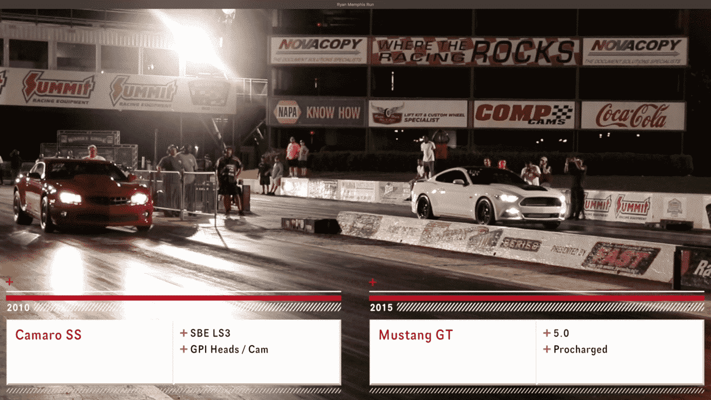 We took Ryan Stevens stock bottom end Camaro SS to Memphis this Thursday to dial in the tune, and just happened to line up next to a clean boosted S550 Coyote. Enjoy!