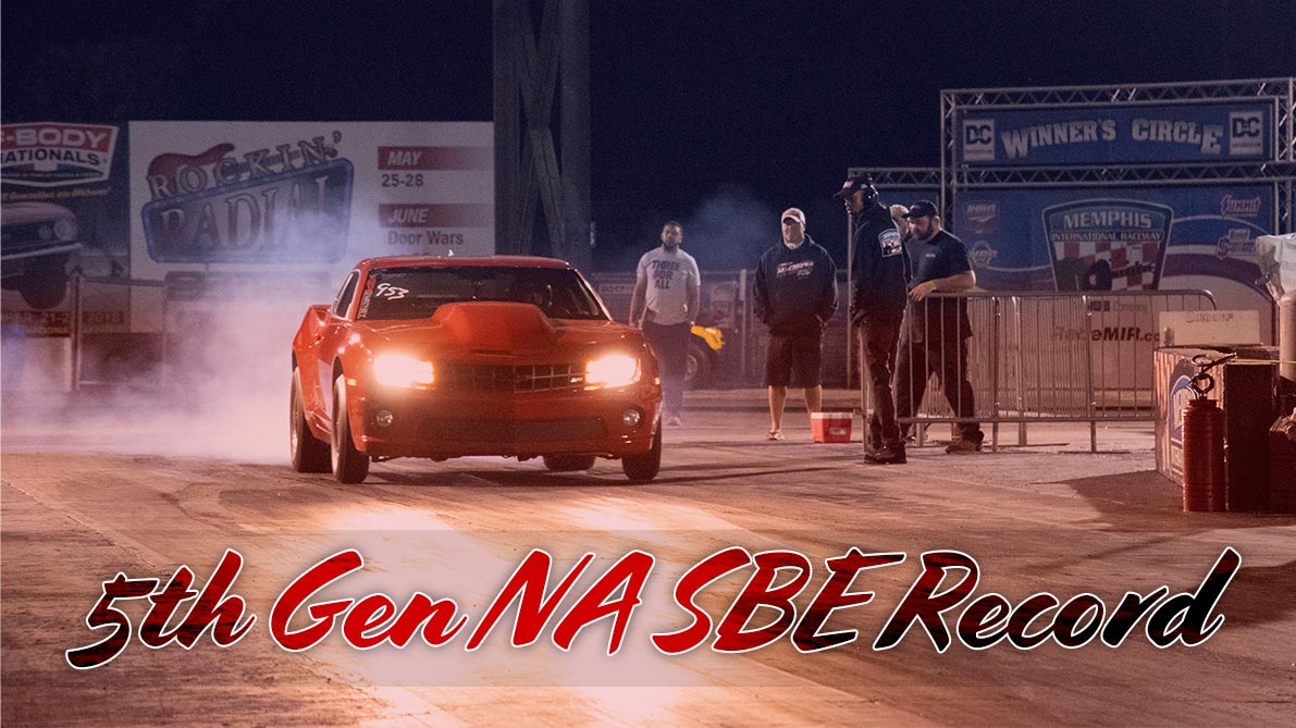 After having the record taken away from us a couple of weeks ago, we headed back to Memphis International to attempt to regain the record! Best pass of the day was 9.25 @ 144mph – the new SBE NA LS3 Record. Setup on Ryan’s 2010 Camaro: Record Pass Video: